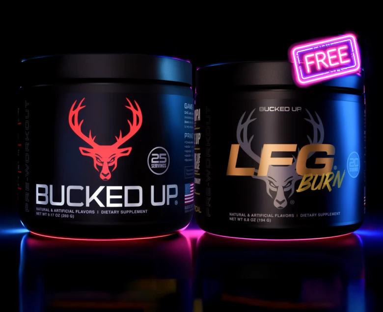 Get a Free 25 serving Bucked Up Blood Raz or 20 serving LFG Tropical Pre !