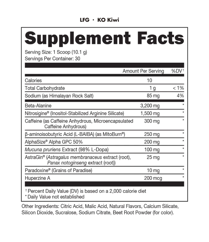 Alpha GPC: Clinically shown to sharpen mental focus and promote the mind to muscle connection. We loaded in 333mg of Alpha GPC (90% yield) to bump the Alpha GPC levels to 300mg.*